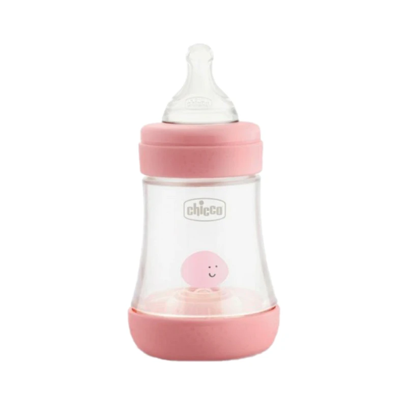 شیشه شیر بدو تولد چیکو مدل perfect 5 رنگ صورتی حجم 150 میلی لیتر
